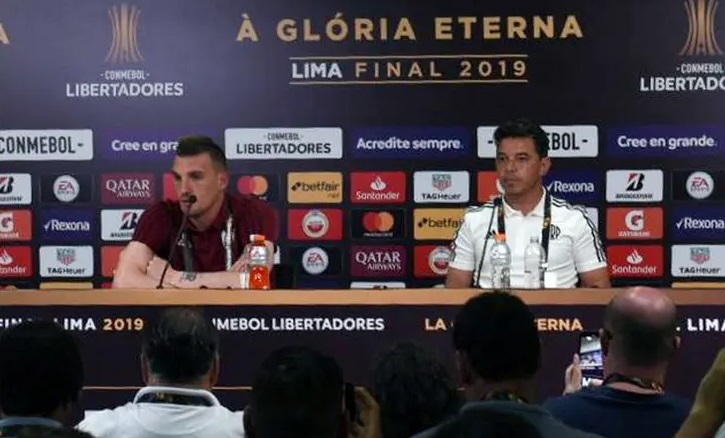 La conferencia de prensa en la que el entrenador de River nombró a los 11 titulares para la gran final fue una montaña rusa. Marcelo Gallardo se emocionó, bromeó, se puso serio y hasta elogió a Jorge Jesús, el entrenador de Flamengo. Insistió en que su equipo no llega de punto y es candidato a quedarse con el título. "Somos candidatos. Tenemos las mismas posibilidades que Flamengo. Lo que venga de afuera no me interesa. Los jugadores lo saben bien", resaltó, ante la consulta sobre la percepción de que los brasileños son más favoritos para alzar el trofeo continental.