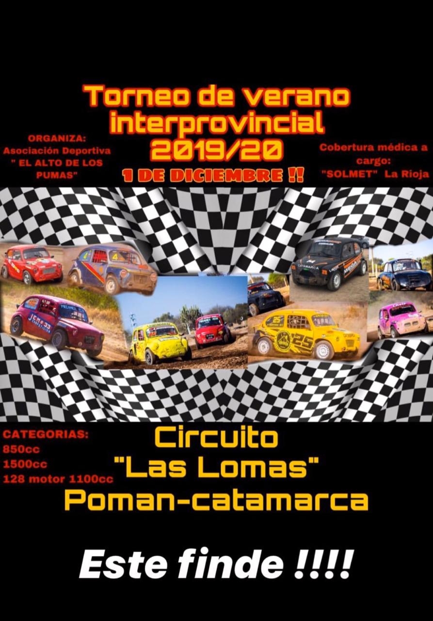 Este domingo 1 de diciembre, se llevará a cabo en el circuito "Las Lomas", en el departamento Pomán, el Torneo de Verano Interprovincial "Fiat, 2019-2020".
