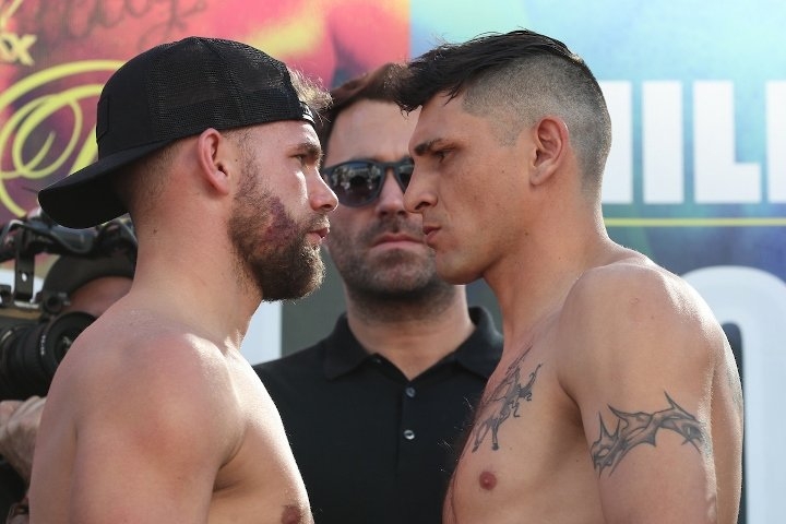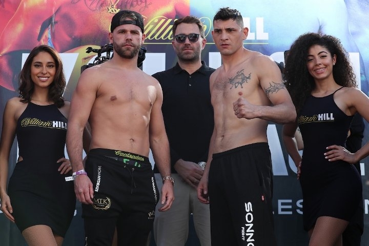 En la tarde del viernes, ambos superaron la ceremonia de pesaje en el estacionamiento del Staples Center abierto al público, dejando todo listo para su choque. El primero fue Cóceres, quien pesó 168 lbs. -76,200 kg.-. Tras ello, Saunders registró 167.4 lbs. -75,900 kg.-.