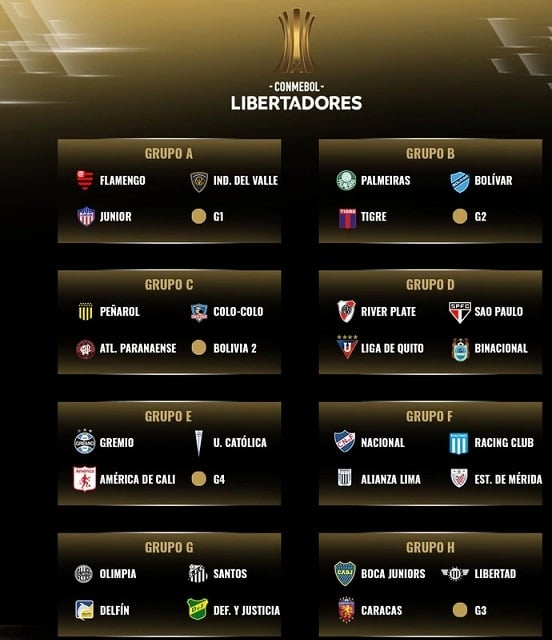 Por su parte, Boca encabeza el Grupo H, en el que enfrentará a Libertad de Paraguay, Caracas de Venezuela y un rival que accederá de las fases previas que podría ser Independiente de Medellín (COL), Deportivo Táchira (VEN), un equipo de Bolivia (que se conocerá el 29 de diciembre) o Atlético Tucumán.