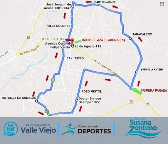 De allí se seguirá hasta la rotonda del B° La Antena, donde, se realizará la primera parada.