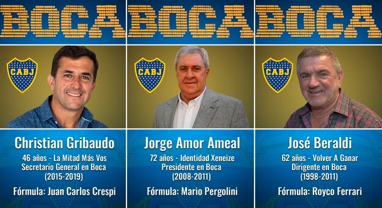 Jorge Amor Ameal fue dirigente durante la era Macri en Boca, llegó a ser presidente tras el fallecimiento de Pedro Pompilio en 2008. Fue candidato en las elecciones de 2011 y 2015 pero no pudo imponerse en las urnas. Nuclea a las agrupaciones Juntos por Boca, Nuevo Boca y Azul y Oro y presentó como candidato a vice primero a Mario Pergolini y vice segundo a Juan Román Riquelme.