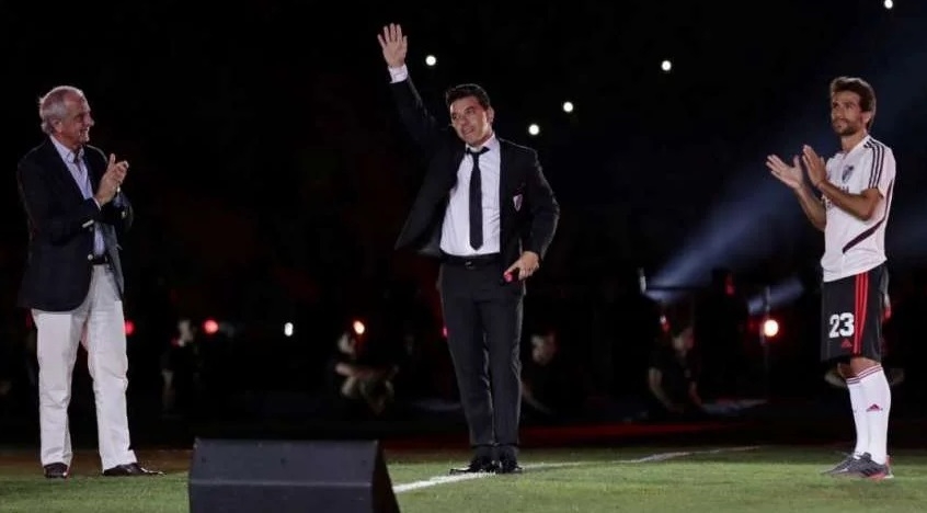 "Queríamos que la fiesta fuese completa, ninguna derrota tapará la victoria y la conquista más hermosa; no se apagará en la vida. Pasarán los partidos y ese triunfo no lo borrará nadie. Agradezco a este grupo de jugadores. Me siento orgullo, me hicieron vivir el año más feliz de mi vida", dijo Gallardo quien se hizo cargo del micrófono.