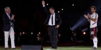 En el minuto diez de la fiesta, Gallardo, Ponzio y Rodolfo D'Onofrio se ubicaron en el centro del campo de juego y dedicaron unas palabras a la multitud.