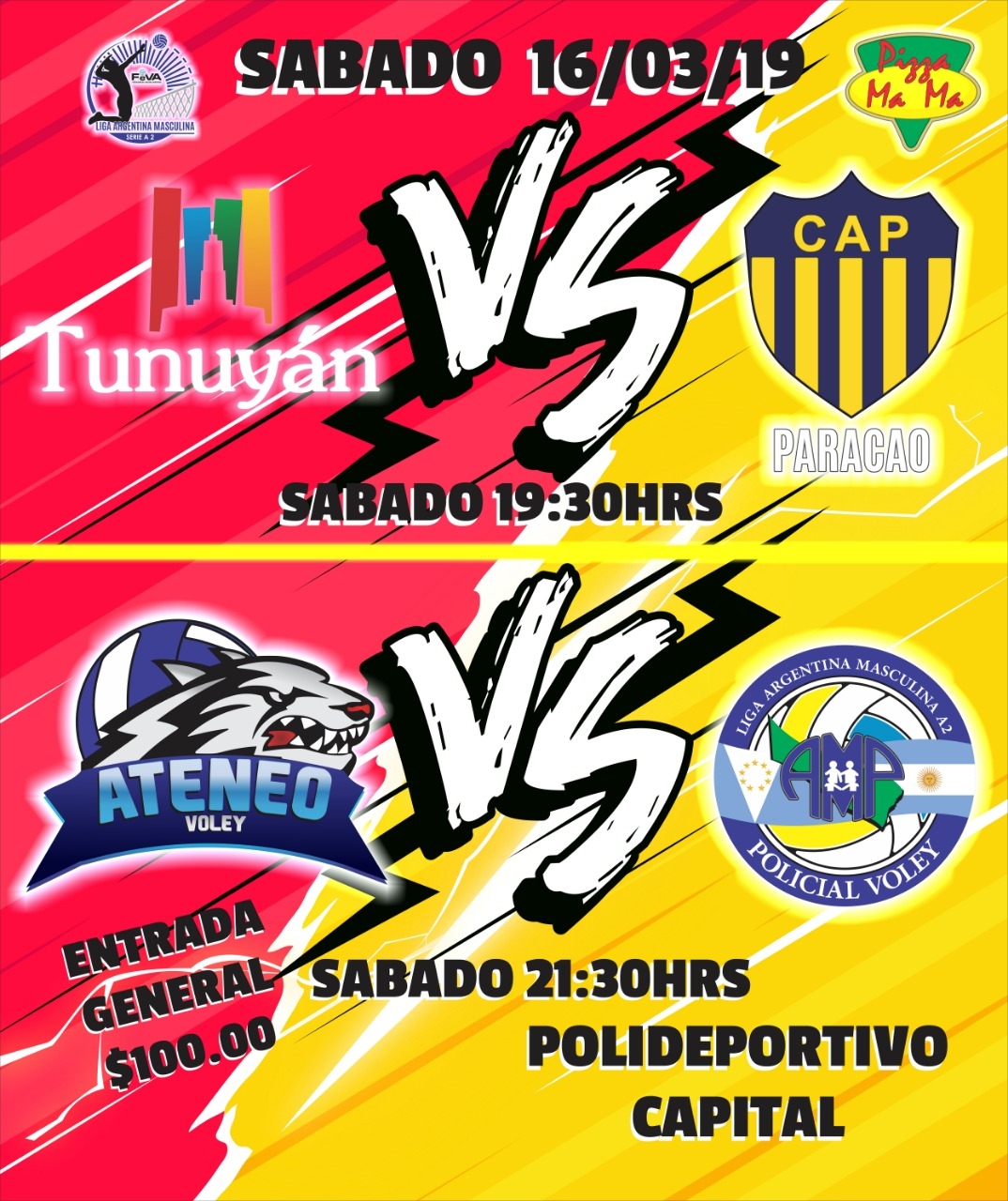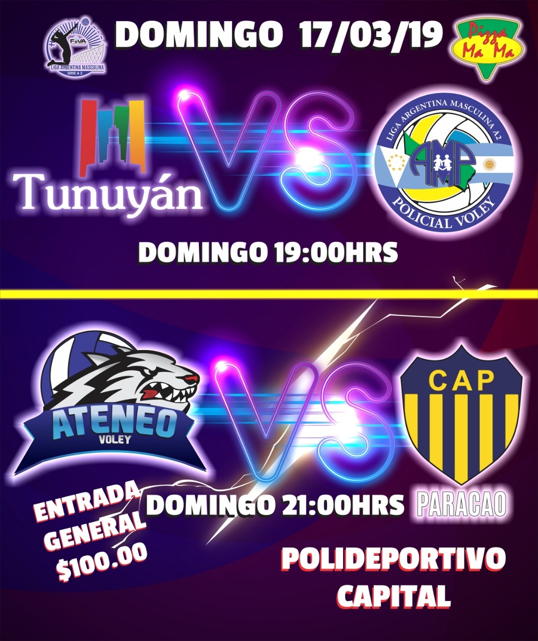 21.30 hs., Ateneo Vóley vs. Municipalidad de Tunuyán.