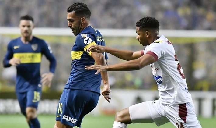 El primer tiempo de Boca no fue bueno. Deportes Tolima, con muy poco, lo controló y en varios pasajes de la etapa lo complicó mediante remates desde media distancia. El tándem Carlos Tevez y Mauro Zárate no funcionó en el "Xeneize", que se mostró partido en el medio y cada avance del equipo colombiano lo sufrió en el retroceso.