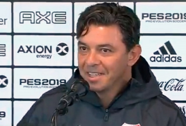 Marcelo Gallardo no pudo contener la risa ante una pregunta sobre el reclamo de Boca al Tribunal Arbitral del Deporte (TAS), que dará a conocer el fallo por los incidentes del sábado 24 de noviembre en las cercanías al estadio Monumental, antes de la segunda final de la Copa Libertadores 2018.