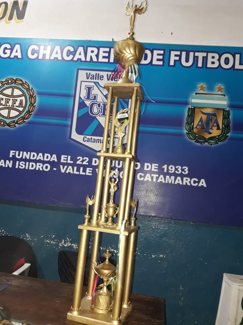 Con relación al cotejo central del “superclásico”, el equipo periodístico de “Pasión Chacarera” 90.5 entregó al presidente de la Liga Chacarera de Fútbol, Juan Carlos Sarmiento, un trofeo de 1,20 Mts. de altura, que se adjudicará el club que se imponga en el tradicional cruce futbolero.