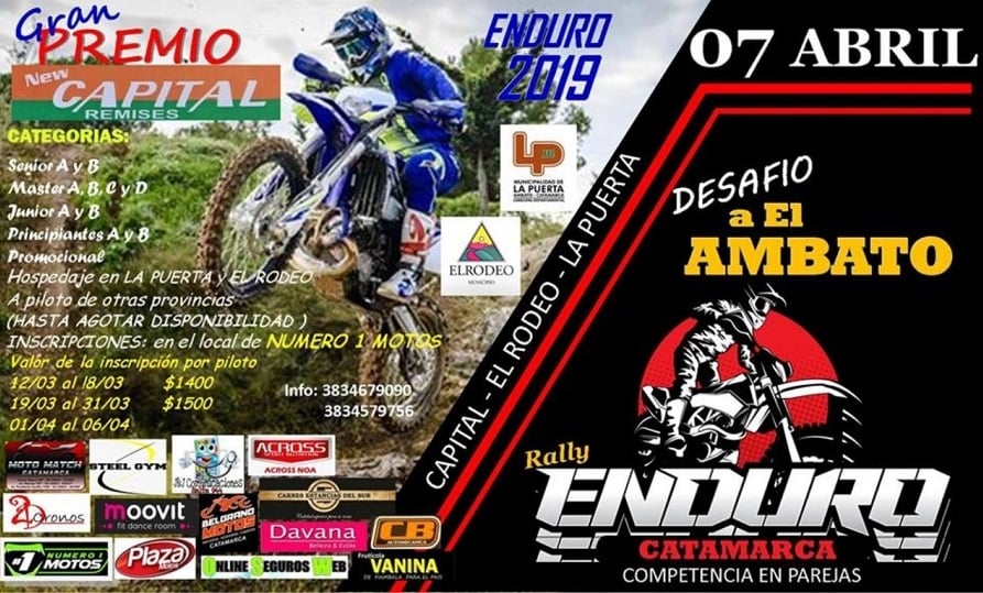 El evento cuenta con los auspicios de Municipalidad de San Fernando del Valle de Catamarca, Municipalidad de La Puerta, Municipalidad de El Rodeo, Remises Capital, Davana, Moto Match, Belgrano Motos, Carnes Estancias del Sur, Steel Gym, 2D Cronos, Número 1 Motos, Moovit, CB Automecanica, Vega Distribuciones, Betos Lomitería, OSW Seguros, Plaza Motos, Fruticola Vanina, Sindicato de Luz y Fuerza, Across, y J&J Comunicaciones