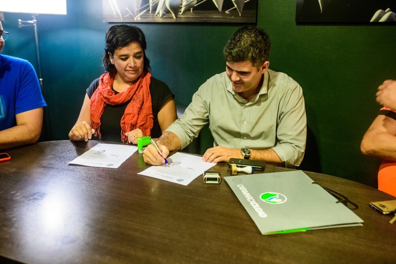 La firma se realizó con la presencia del director general de deportes, Mariano Brunello, Julio René Díaz y Alejandra Díaz, representantes de Hockey Social, y Lorena Leguizamón, presidenta de la Federación Catamarqueña de Hockey.