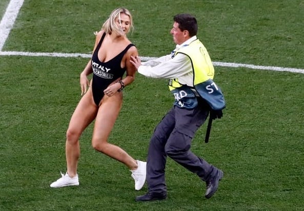 Ya está casi garantizado: ante cada gran evento deportivo aparece un intruso o intrusa en pleno campo de juego, y en varias ocasiones sin ropa. A los 17 minutos del primer tiempo entre Liverpool y Tottenham, una mujer con una malla negra cavada cruzó el césped del Wanda Metropolitano de Madrid hasta que fue detenida.