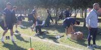 El grupo que se aloja en un hotel céntrico, cumple actividades en doble turno, tanto en diferentes campos de juego como en un gimnasio, durante toda la semana.