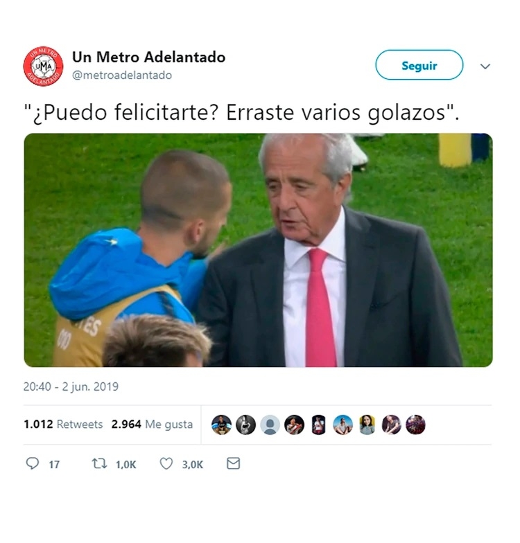 Minutos más tarde, el marcador central le cometió la falta a Janson que le permitió al elenco de Victoria estirar la ventaja por intermedio de un penal. El recuerdo de los hinchas de River no se hizo esperar: repasaron la imagen de Izquierdoz persiguiendo desde atrás al "Pity" Martínez en la final de la Copa Libertadores que se desarrolló en Madrid hace algunos meses atrás.