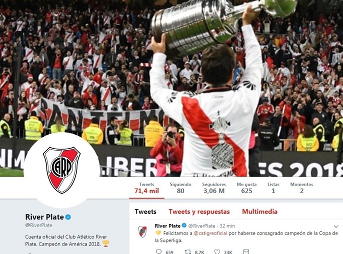 Sin nombrar a Boca, por supuesto, la gente de River mató dos pájaros de un tiro: felicitación al campeón.
