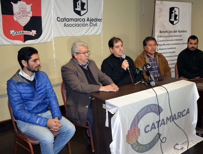 Hoy, en horas de la mañana, se realizó la presentación del histórico torneo ajedrecístico en las instalaciones del Club Social 25 de Agosto, y participaron el presidente de la Asociación Catamarca Ajedrez, Rubén Vega, el director provincial de Desarrollo Turístico de la secretaría de Estado de Turismo, Eduardo Navarro, y Daniel Toloza, último campeón provincial, y Alejandro Erazo, quien integra la comisión directiva de la Asociación Catamarca Ajedrez.