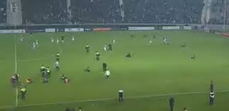 Ante un estadio José María Minella colmado por 20 mil hinchas, los jugadores en cancha y los suplentes del equipo tucumano se sentaron en el campo de juego, en señal de negativa a seguir con el partido, luego se retiraron a los vestuarios.