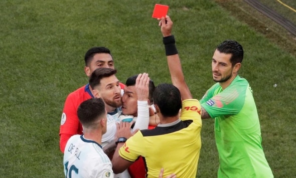 El Tribunal de Disciplina de la Conmebol resolvió sancionar a Lionel Messi con una partido de suspensión y una multa de 1.500 dólares por la expulsión en el partido por el tercer puesto de la Copa América entre Argentina y Chile. En aquella ocasión, el árbitro paraguayo Mario Díaz de Vivar decidió mostrarle la tarjeta roja tanto al astro rosarino como al defensor Gary Medel por un encontronazo entre ambos, que debió ser resuelto con un acrílico amarillo para cada uno.