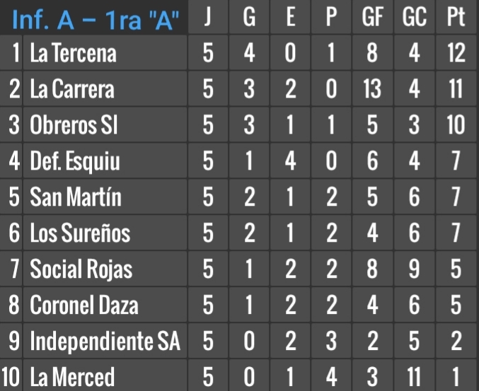 Resultados 5ta. fecha de Infantiles A y B