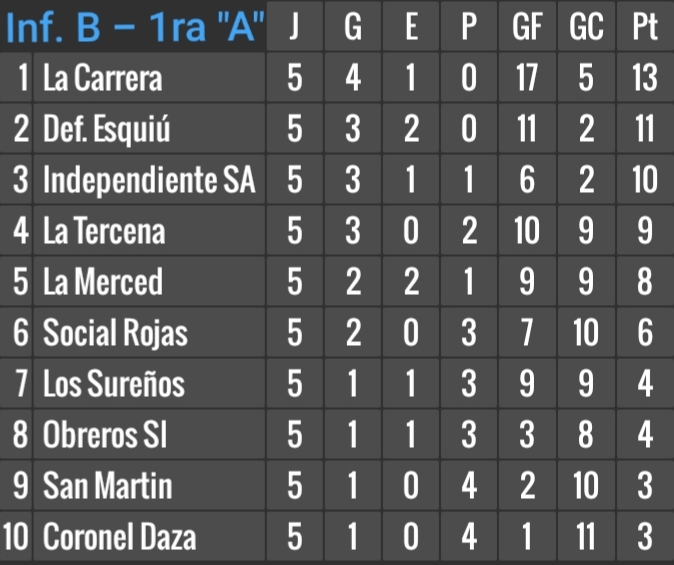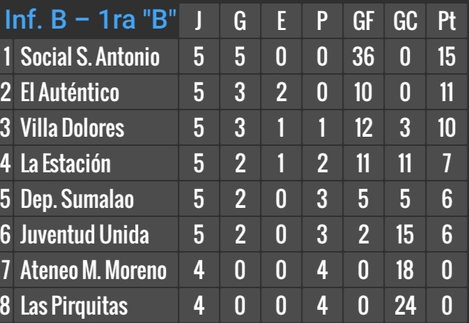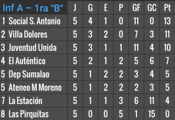Por pedido de Las Pirquitas, todavía no fue reprogramado el partido con Ateneo Mariano Moreno, en Infantiles B, postergado de la 5ta. fecha.