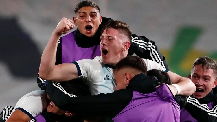 Sin embargo, la aparición de los "europeos" fue clave para volver a poner en el frente al combinado nacional. Nicolás González, futbolista del Stuttgart, realizó una maniobra personal por el sector izquierdo a pura gambeta. Soltó atrás con el futbolista del Hellas Verona italiano Santiago Colombatto. Éste lo vio a Carlos Valenzuela, que controló y sacó un poderoso disparo al gol.