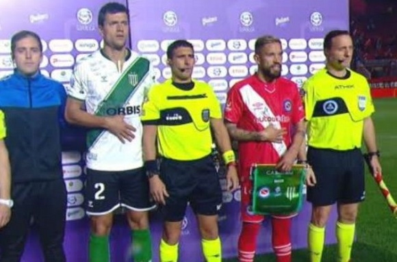 Tal como lo hizo el defensor campeón del mundo en México 1986, en el partido final ante Alemania, los capitanes del Bicho y el Taladro se hicieron un simbólico agujero en la camiseta y colocaron allí su mano en medio de los aplausos del resto de sus compañeros y los hinchas.