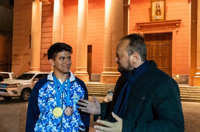 En el lugar, Julián, en compañía del secretario de deportes Maximiliano Brumec, subió a una camioneta de Defensa Civil, con la que recorrió parte de la ciudad Capital, antes de arribar al Paseo de la Fe, frente a la Catedral Basílica de Nuestra señora del Valle, a donde llegó en gesto de agradecimiento a la “Madre Morena”.