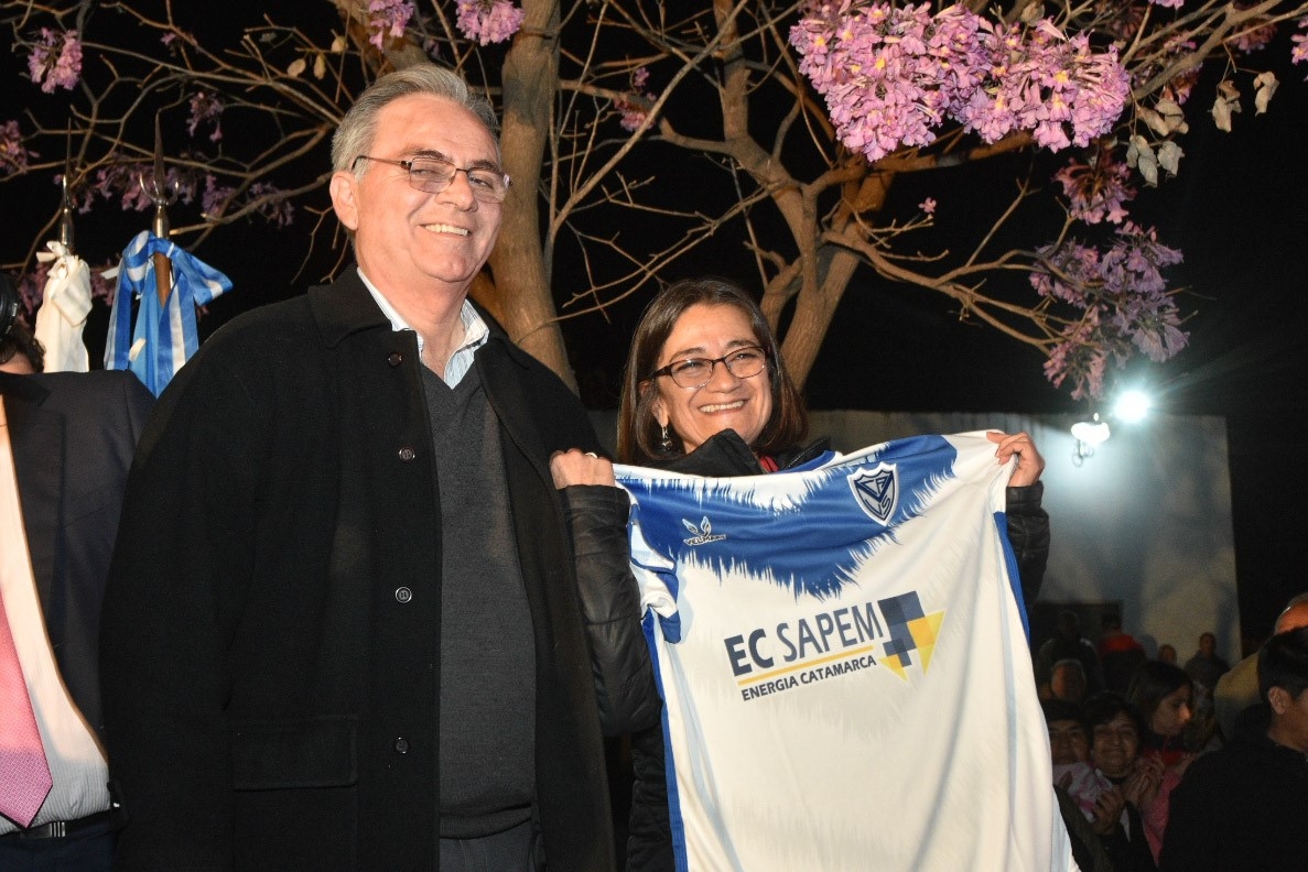 Junto a la mandataria el presidente de la institución, Lic. Edgardo Macedo; el ministro de Gobierno, Marcelo Rivera; de Obras Públicas, Rubén Dusso; el presidente del Senado a cargo de la vicegobernación, Ing. Solá Jais; el secretario de Deportes, Maximiliano Brumec; el intendente de la Capital, Raúl Jalil; el presidente de la Liga Catamarqueña de Fútbol y director Director de YMAD, Daniel Barros (ex presidente velezano), y funcionarios y legisladores provinciales.