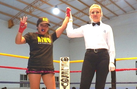 Bajo la fiscalizado por la Federación Catamarqueña de Boxeo (FCB), en la divisional hasta 52 Kg., Ailen Romero (51,200 Kg., DT Diego “Piri” Bazán) venció a Mara Fabián (51,700 Kg., Salta) por puntos y luego de tres asaltos.