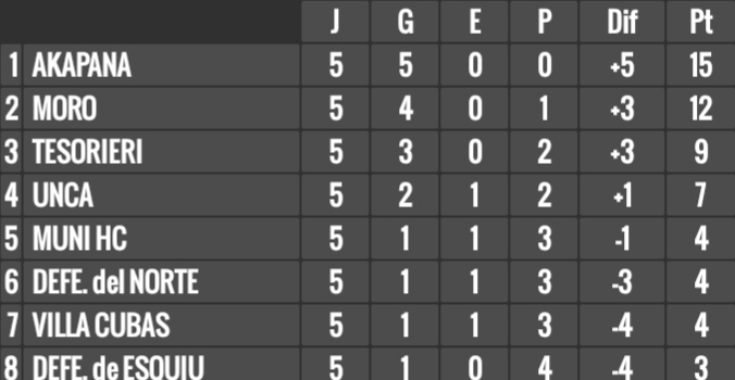 En otros de los resultados, Moro le ganó el clásico a Villa Cubas por 1 a 0. Por su parte UNCa, venció a Muni por 3-2 en un ajustadísimo partido. Mientras que Tesorieri consumo una nueva victoria al vencer a Defensores del Norte por 2-1.