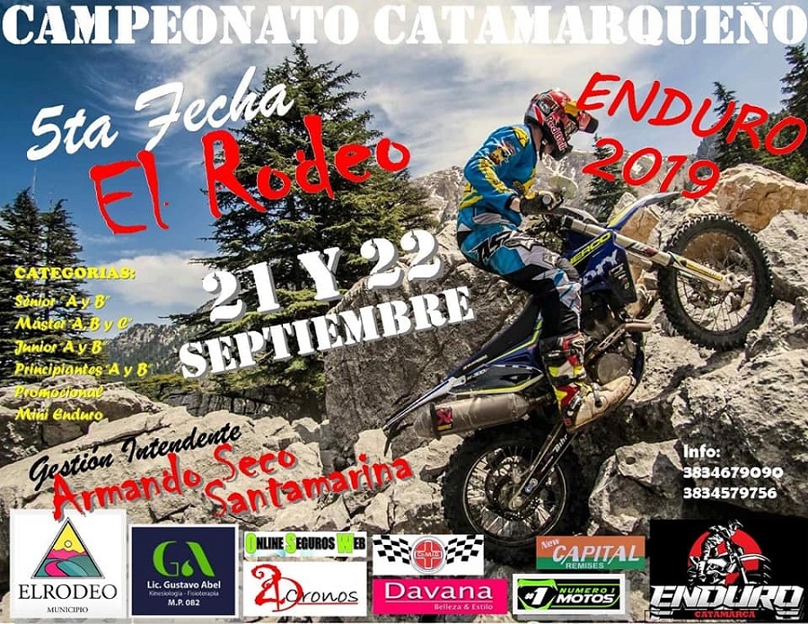 La carrera cuenta con el apoyo de la Municipalidad de El Rodeo, 2DCronos, Número 1 Motos, Remises New Capital, COMID, Online Seguros Web, Davana y Lic. Gustavo Abel, Kinesiología y Fisioterapia.