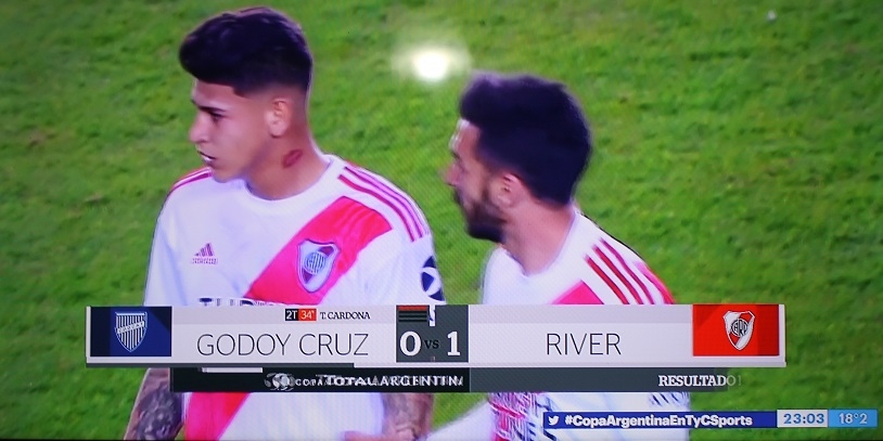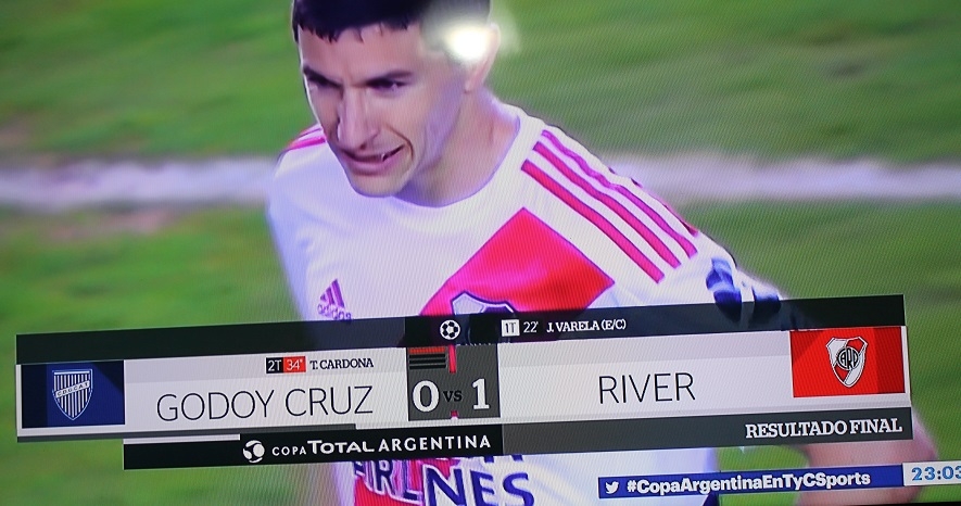 "Dos cabezazos en el área es gol", aseguran los expertos. Y así fue que River se puso en ventaja, aunque los dos que tocaron el balón fueron futbolistas de Godoy Cruz. Kevin Gutiérrez la peinó y Joaquín Varela terminó de meter el centro de Nacho Fernández en propia puerta. Así, casi sin quererlo, el Millonario estableció el 1-0.