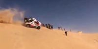 El coche del ex campeón de la Fórmula 1 dio un par de vueltas de campana al atravesar una duna en una zona de espectadores cuando apenas llevaba recorrido un kilómetro de los 345 que componían el tramo cronometrado del día. Al parecer, logró salir ileso del accidente ya que continuó su camino sin bajarse del auto.