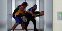 Los empleados del hotel tuvieron que acudir al rescate. El ascensor subió un poco y los jugadores lograron salir, sacando medio cuerpo de la caja que lo transportaba.