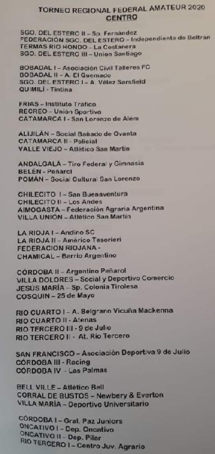 Todos los equipos catamarqueños estarán en la Región Centro: San Lorenzo de Alem compartirá grupo con Tráfico de Frías y Unión Sportiva de Recreo, La Paz; en tanto que Policial estará en la misma zona de San Martín del Bañado y Social Bañado de Ovanta.