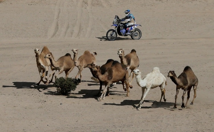 Mauricio Javier Gomez también se encontró a la manada de camellos en la segunda etapa del Dakar. Foto: REUTERS/Hamad I Mohammed