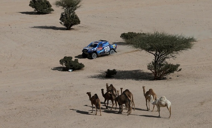 El sudafricano Giniel De Villiers (Toyota) ganó la segunda etapa en categoría de autos luego de 401 kilómetros, 367 de ellos de especial, entre Al Wajh y Neom en Arabia Saudita, mientras que el español Fernando Alonso perdió una rueda y más de dos horas en la reparación.