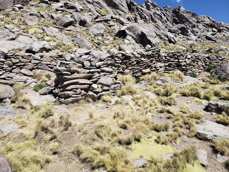 A continuación, procedimos a remontar una quebrada en dirección sudoeste y, tras aproximadamente 3 kilómetros, llegamos al segundo lugar de acampe: Campo de Minas (3960 msnm), siendo las 11 am.