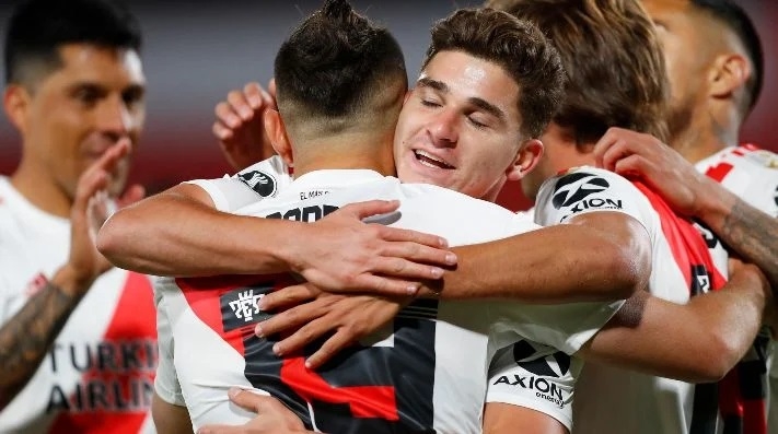 A los 60 minutos, Álvarez quedó mano a mano con el arquero tras un gran pase de Borré y el chico de Calchín definió con certeza para poner el segundo tanto del encuentro y el quinto seguido en su cuenta personal.
