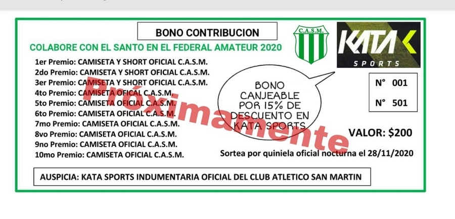 El mencionado Bono Contribución tendrá el valor de 200 pesos, con doble chance por bono. Los premios serán un total de 10, entre conjuntos y camisetas oficiales.
