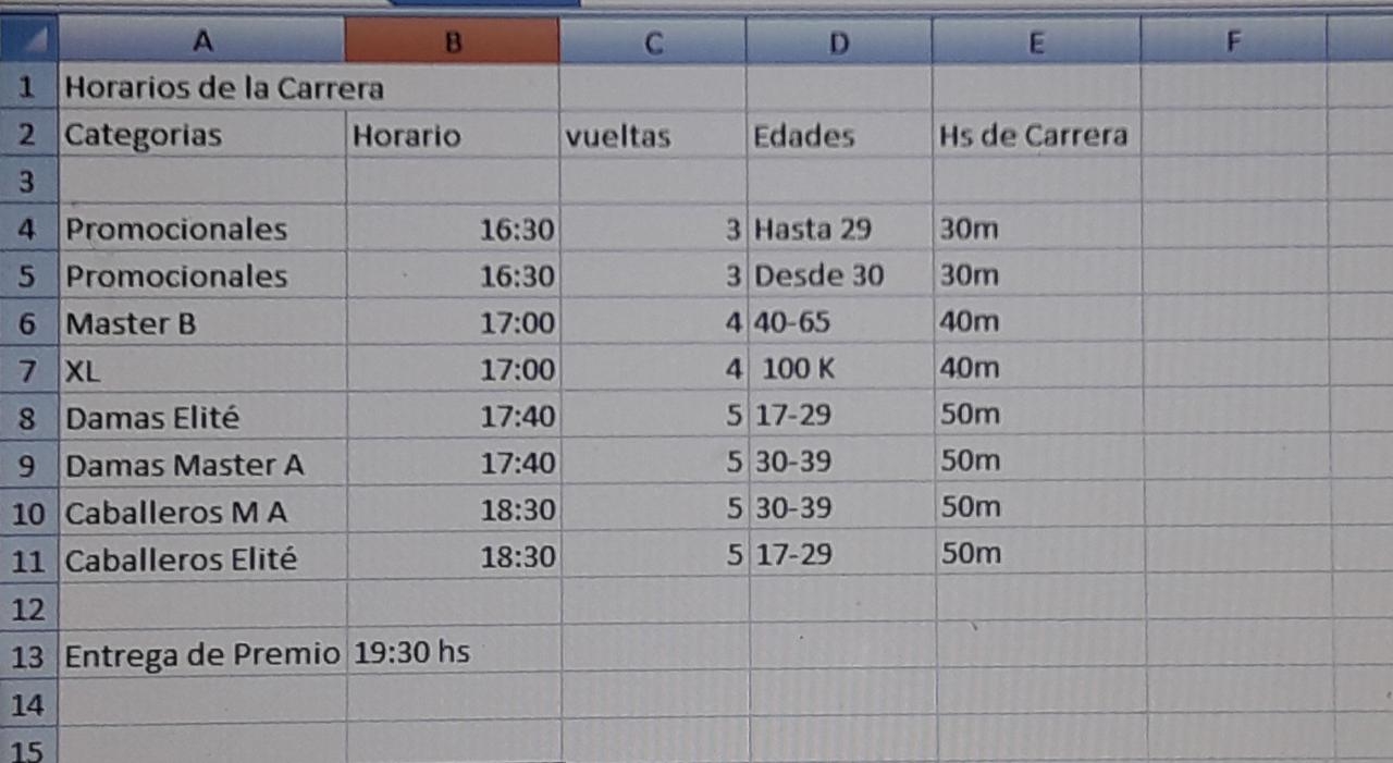 Al cabo de la prueba, alrededor de las 19.30 hs., se llevará a cabo el acto de premiación.