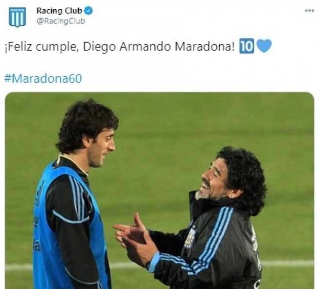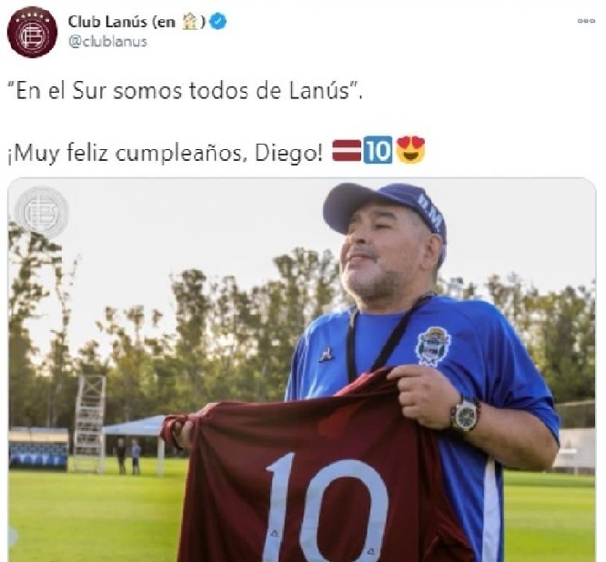 El Xeneize le dedicó un emotivo video a Diego. Por su parte, el Lobo publicó dos mensajes para su entrenador. Racing subió una imagen suya junto a Diego Milito en el Mundial de Sudáfrica 2010, mientras que el Granate destacó una de sus frases: "En el Sur somos todos de Lanús".