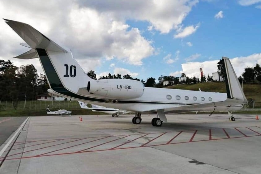 Se trata del avión Gulfstream V matrícula LV-IRQ, fabricada en Estados Unidos en 2002, y que el argentino pagó 15 millones de dólares, pero que por su matrícula argentina no puede ser utilizada habitualmente por la Pulga para sus traslados dentro de España.
