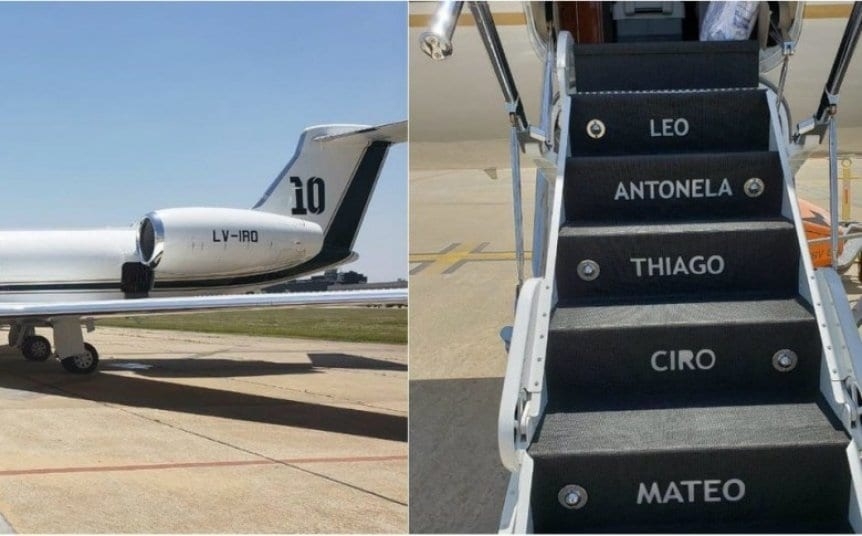 A su vez, Messi le sumó distintos agregados personalizados desde que lo adquirió hace dos años. En la cola, por ejemplo, luce el número 10 que lo acompañó en la mayor parte de su carrera profesional, mientras que la escalera lleva su nombre, el de su esposa Antonela y sus hijos Thiago, Mateo y Ciro.