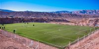 Allí, bajo acaloradas tardes donde el sol golpea con fuerza, los futbolistas despliegan su magia ante algunos turistas que visitan la ciudad y los cerros acompañan adornando el paisaje de aquella construcción que resalta sobre las demás.