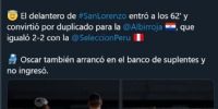 Y después escribieron: “El delantero de San Lorenzo entró a los 62’ y convirtió por duplicado para la “albirroja”, que igualó 2 a 2 con la Selección de Perú”.