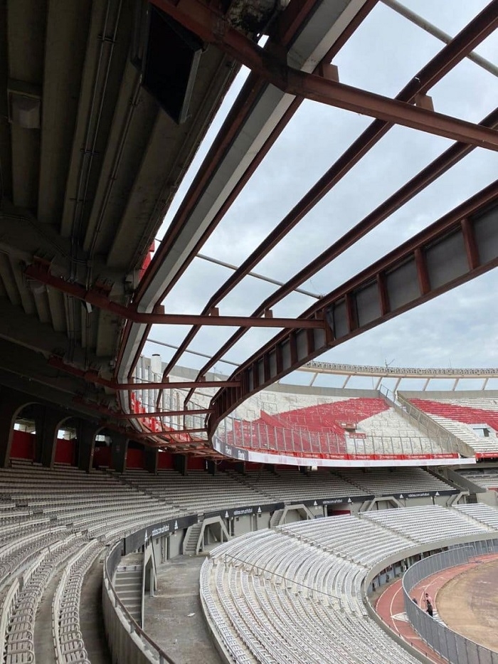 Ahora en Núñez trabajan en la Centenario alta: se removieron los alambrados y se comenzaron a retirar los alerones de esta tribuna. River aprovecha al máximo la ausencia del público en el fútbol argentino para mejorar su casa.