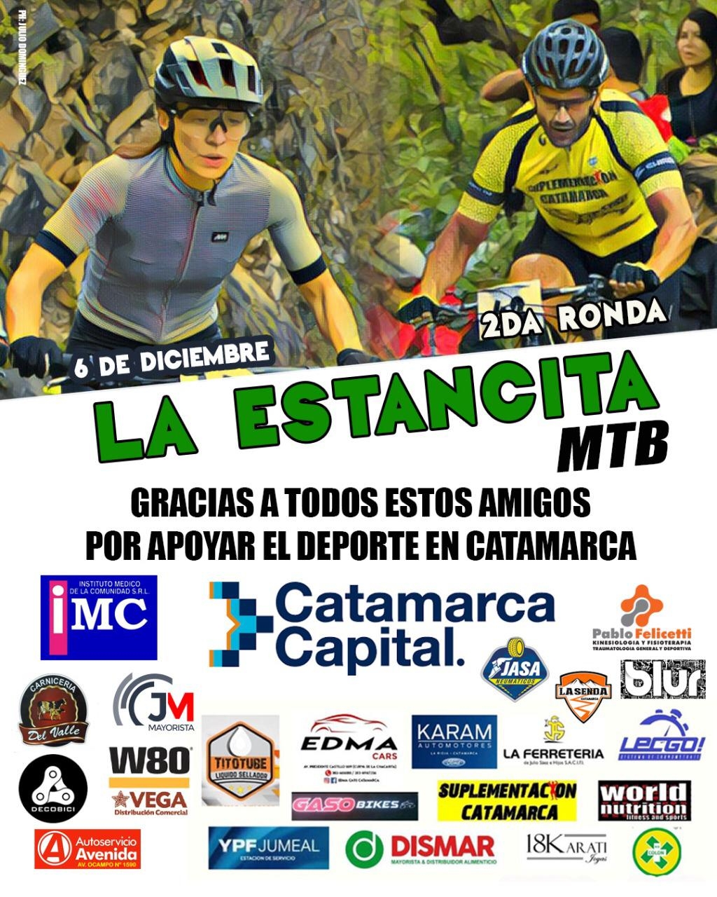 Recuérdese que la primera edición de la Estancita MTB tuvo como ganadores en Máster B a Federico Galíndez, en Máster C a Juan Córdoba en Pro a Diego Fontán, en Varones Promocionales +35 a Javier Favone, en Máster A1 a Julio Sosa, Damas Promocionales a Isabel Arevalo, en Élite a Mario Agüero, en Damas Élite a Cecilia Vázquez, en Máster A2 a Martín Melella, en Juveniles a Marcos Salvatierra y en Infantiles a Tomás Mendizabal.
