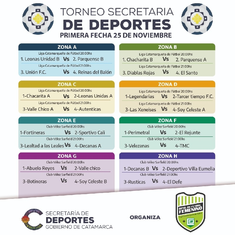 En cancha del estadio “Malvinas Argentinas”, se enfrentarán los equipos de las zonas A, B, C y D, mientras que en el predio “Los Fundadores”, lo harán las zonas E, F, G y H. Cabe recordar que todas fechas serán sin público.