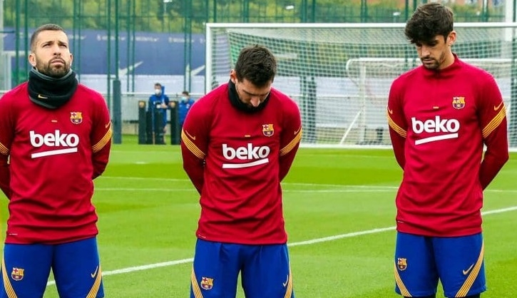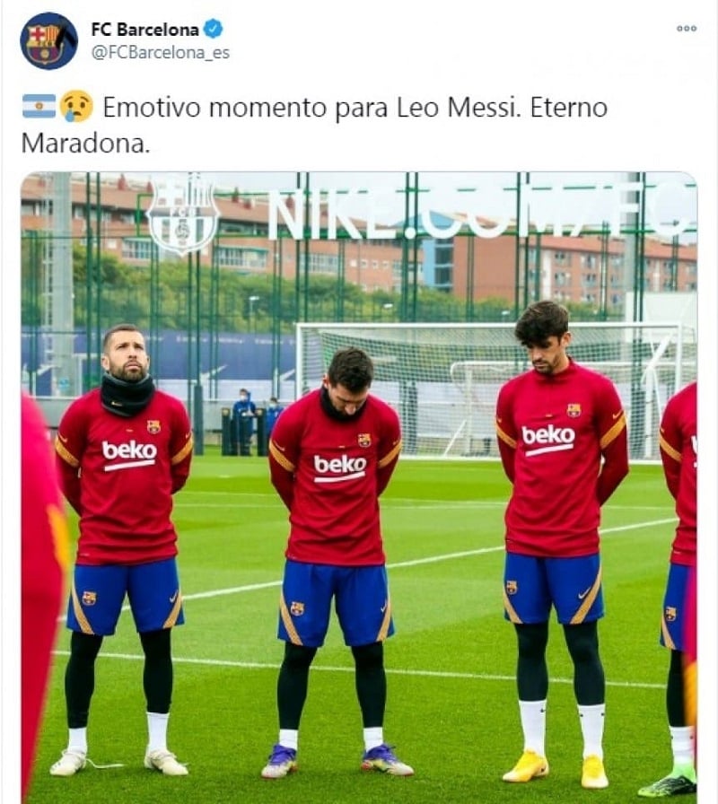 A dos días del fallecimiento de Diego Armando Maradona, Barcelona decidió homenajearlo, con Lionel Messi a la cabeza; todo el plantel se reunió antes del entrenamiento e hizo un minuto de silencio durante el cual se vio a Leo cabizbajo.