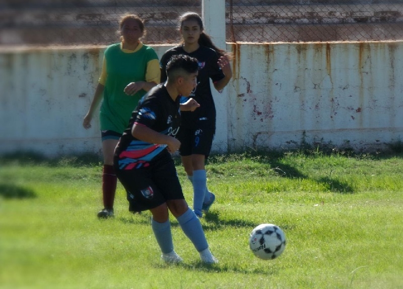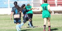El equipo femenino de San Martín, antes del inicio de su partido en el certamen que organiza la Liga Chacarera de Fútbol, posó con una bandera en homenaje a "Rulo" Chavez.